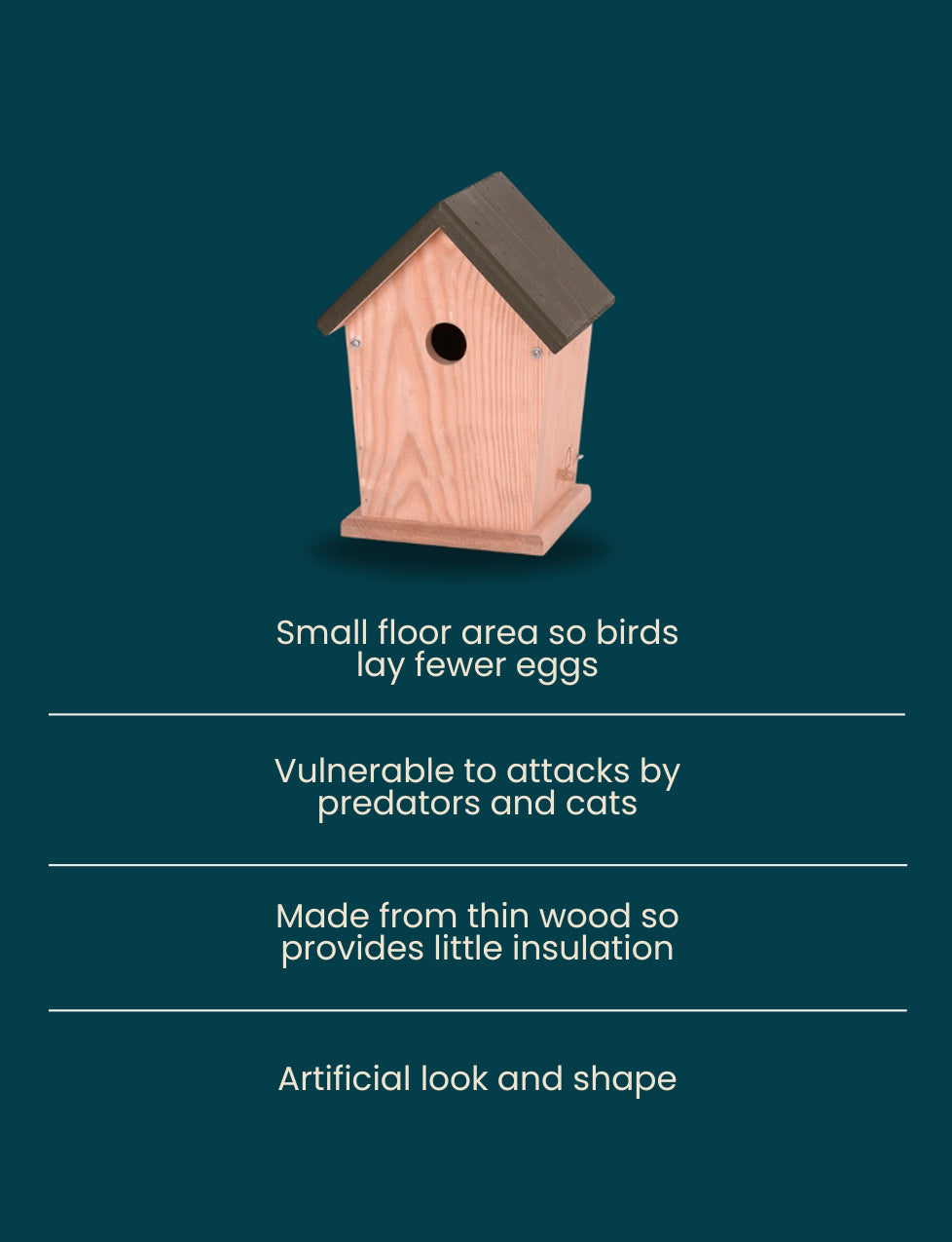 Experts from the RSPB, BTO, and ornithologists have identified key criteria for nest boxes to maximise brood sizes and protect birds from inclement weather. Unlike many on the market, our bird houses meet these guidelines. Designed with thick, insulated walls and proper ventilation they provide a safe and stable environment for nesting birds.